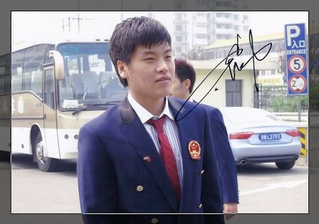 中国男子乒乓球队运动员郝帅的亲笔签名照片