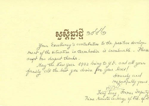 中国驻柬埔寨王国大使胡乾文简介及签名封